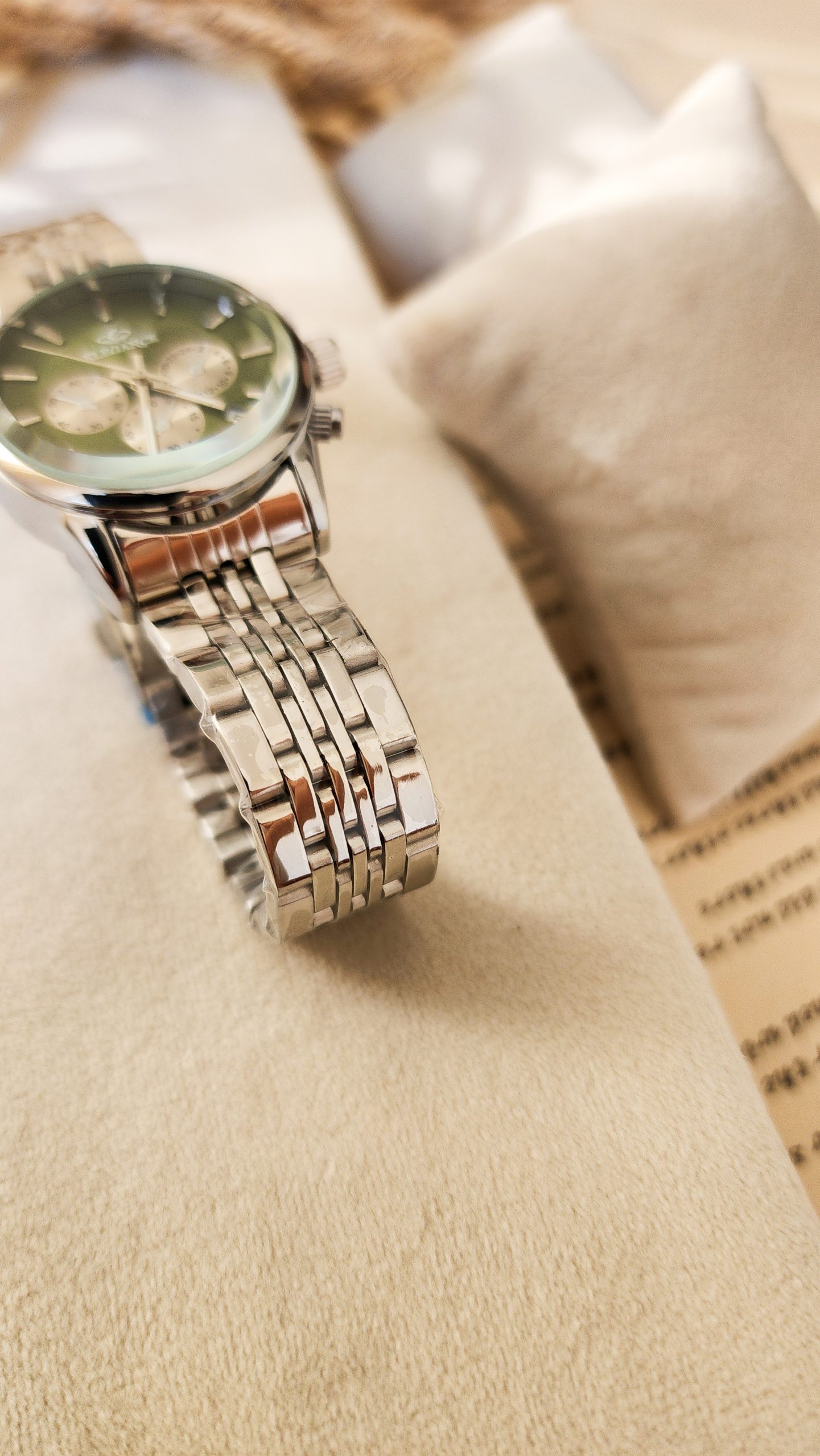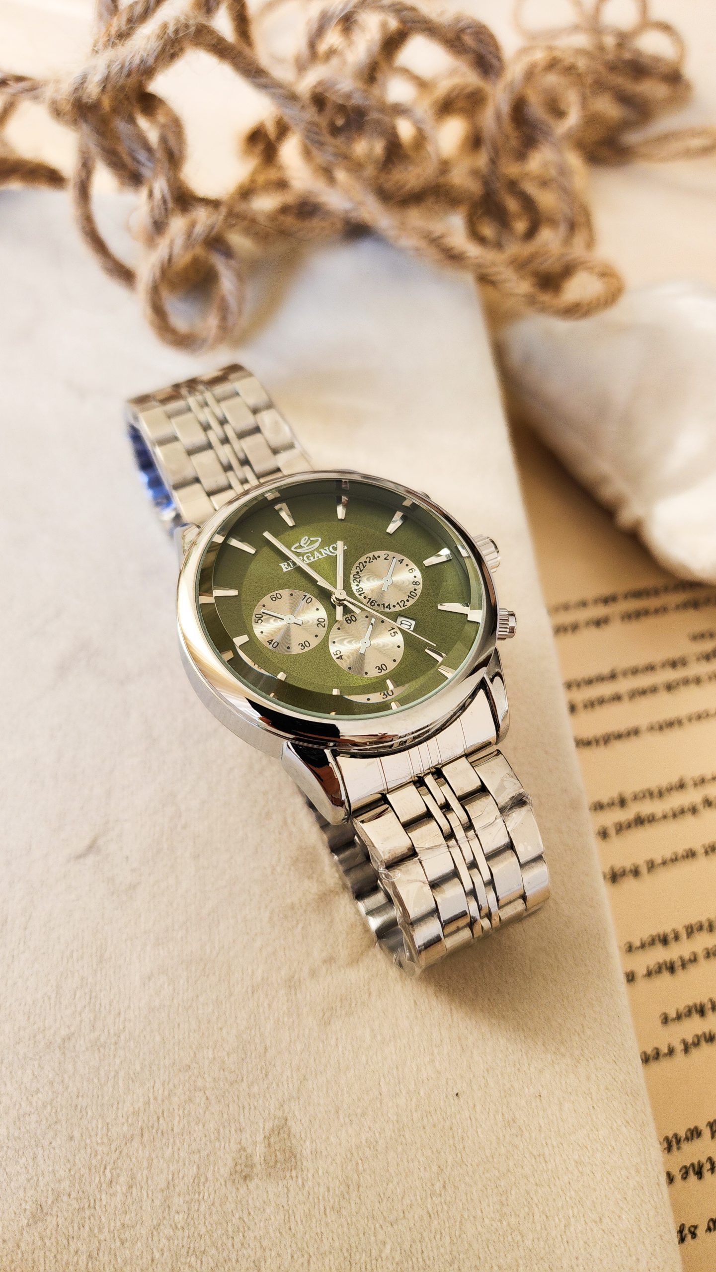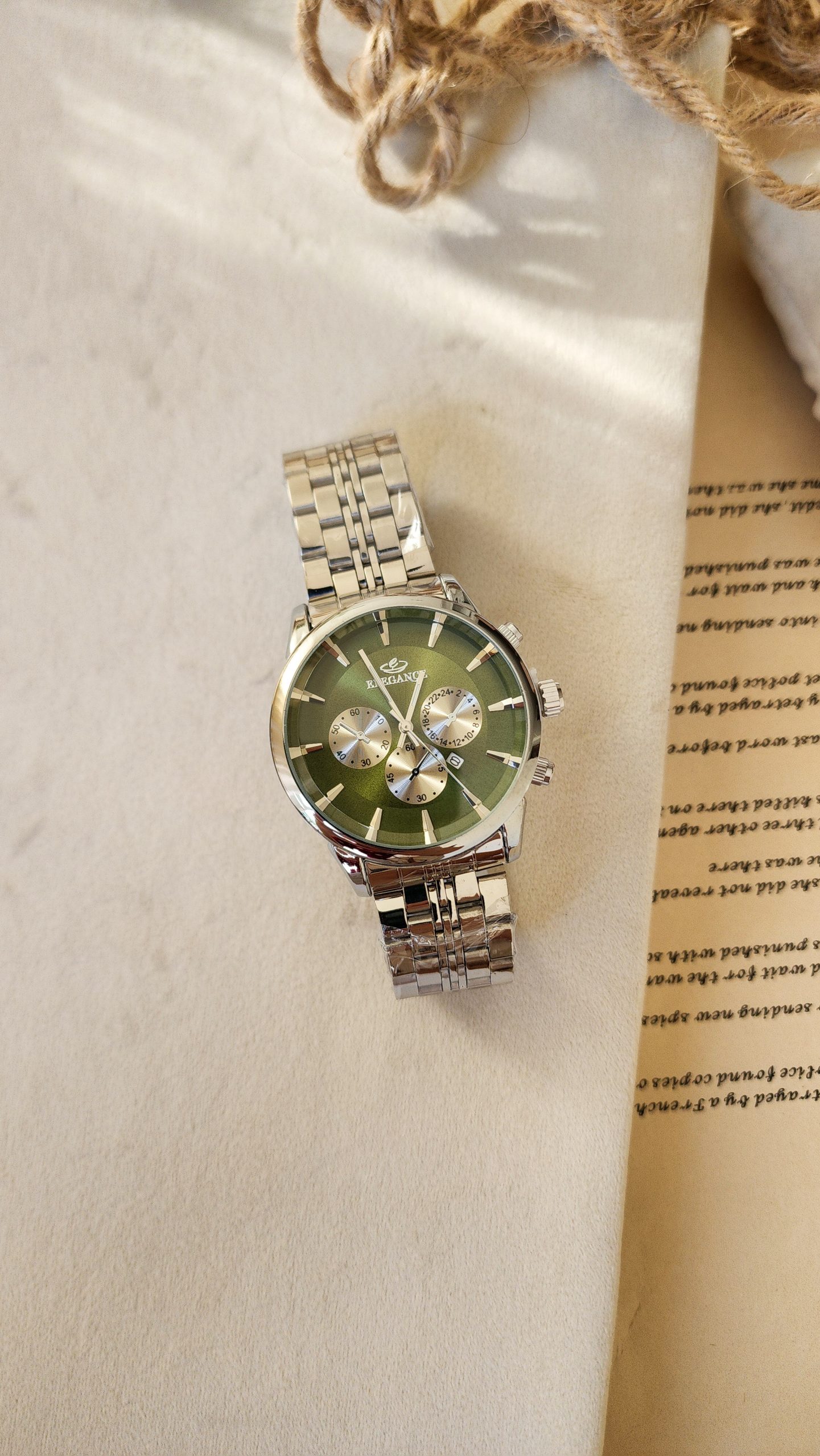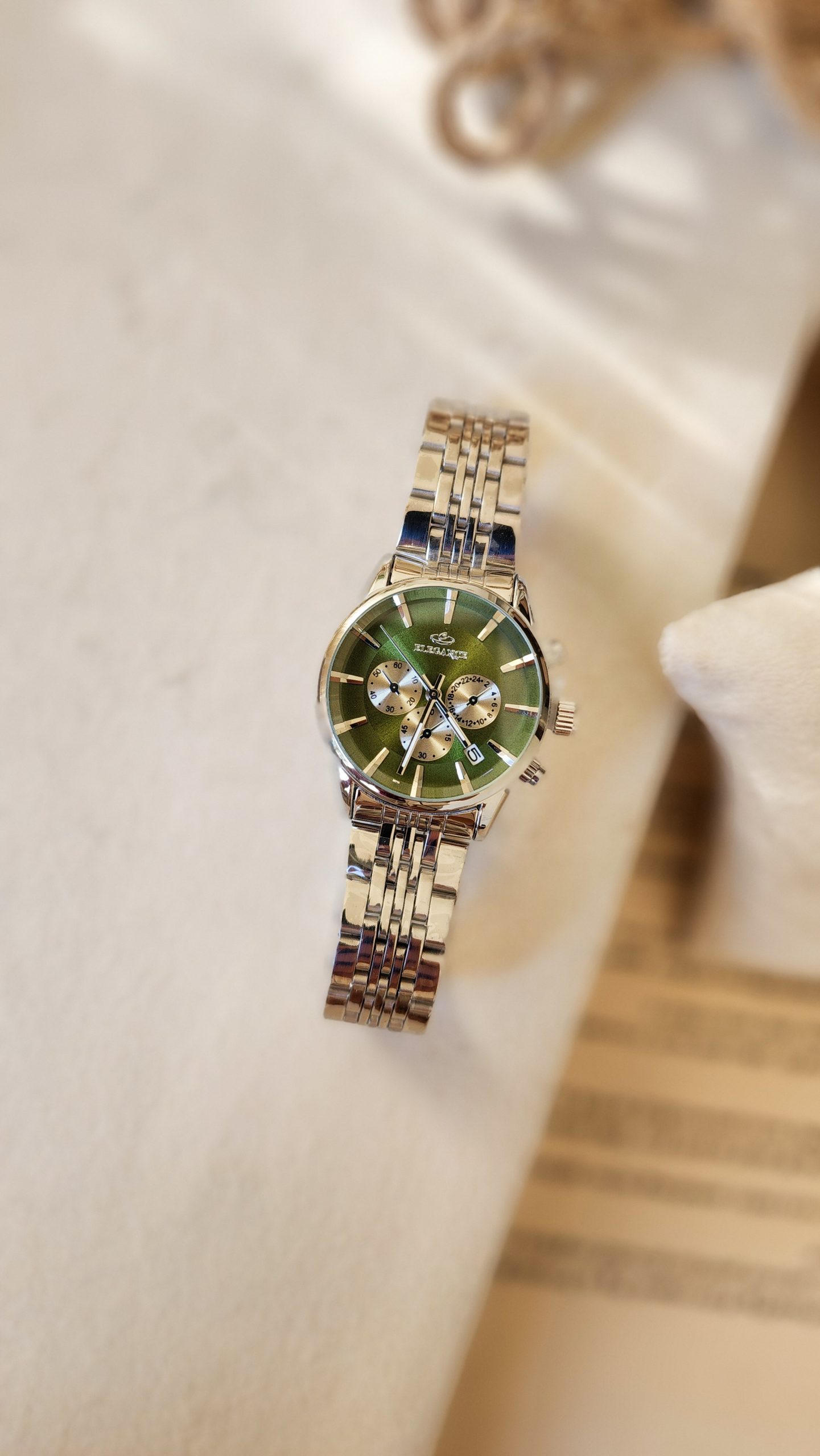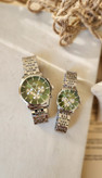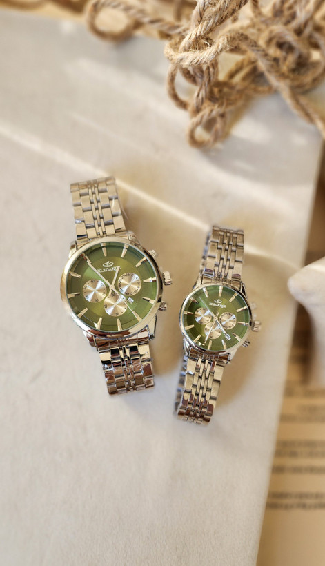 ساعت ست زنانه و مردانه مدل الگانس طرح سه موتوره رنگ سیلور صفحه سبز کد 1213